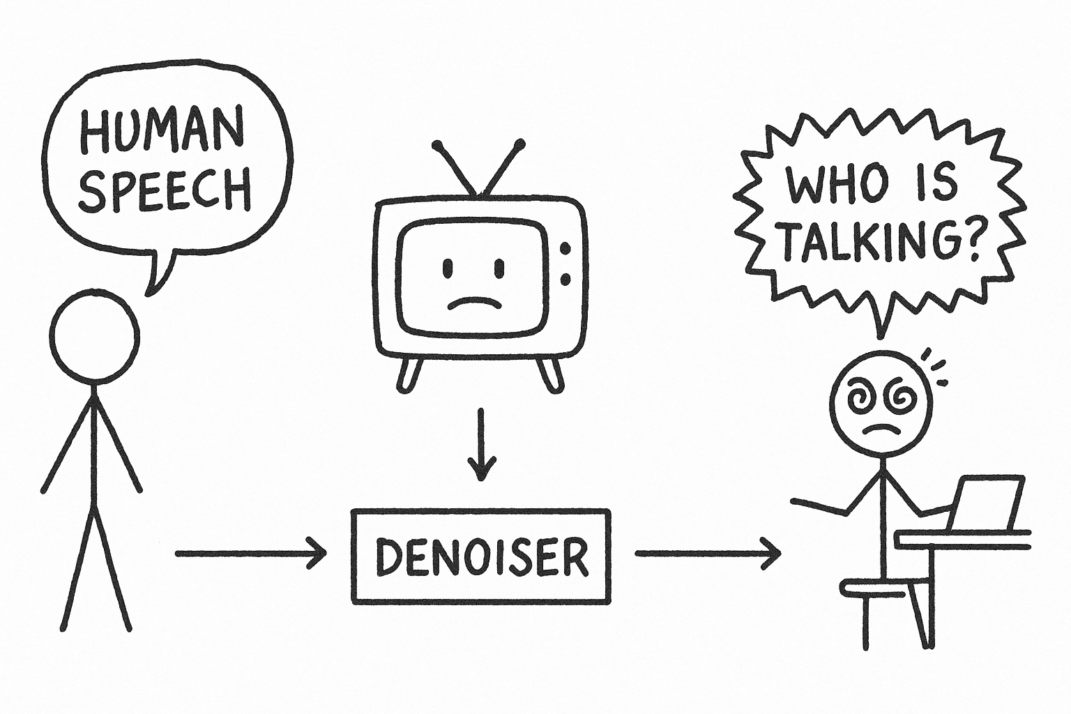 This creates a paradox. When a user is on a call with a TV playing in the background, a standard denoiser does its job perfectly.