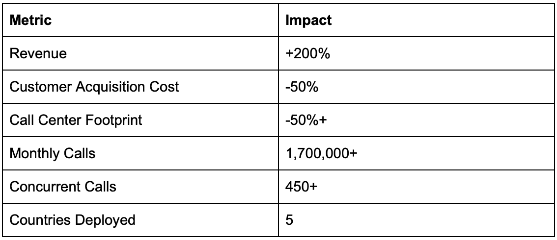 But here's what actually happened: They reduced their call center footprint by over 50%. Revenue increased 200%. They now handle 450+ concurrent calls across 5 countries with AI agents.