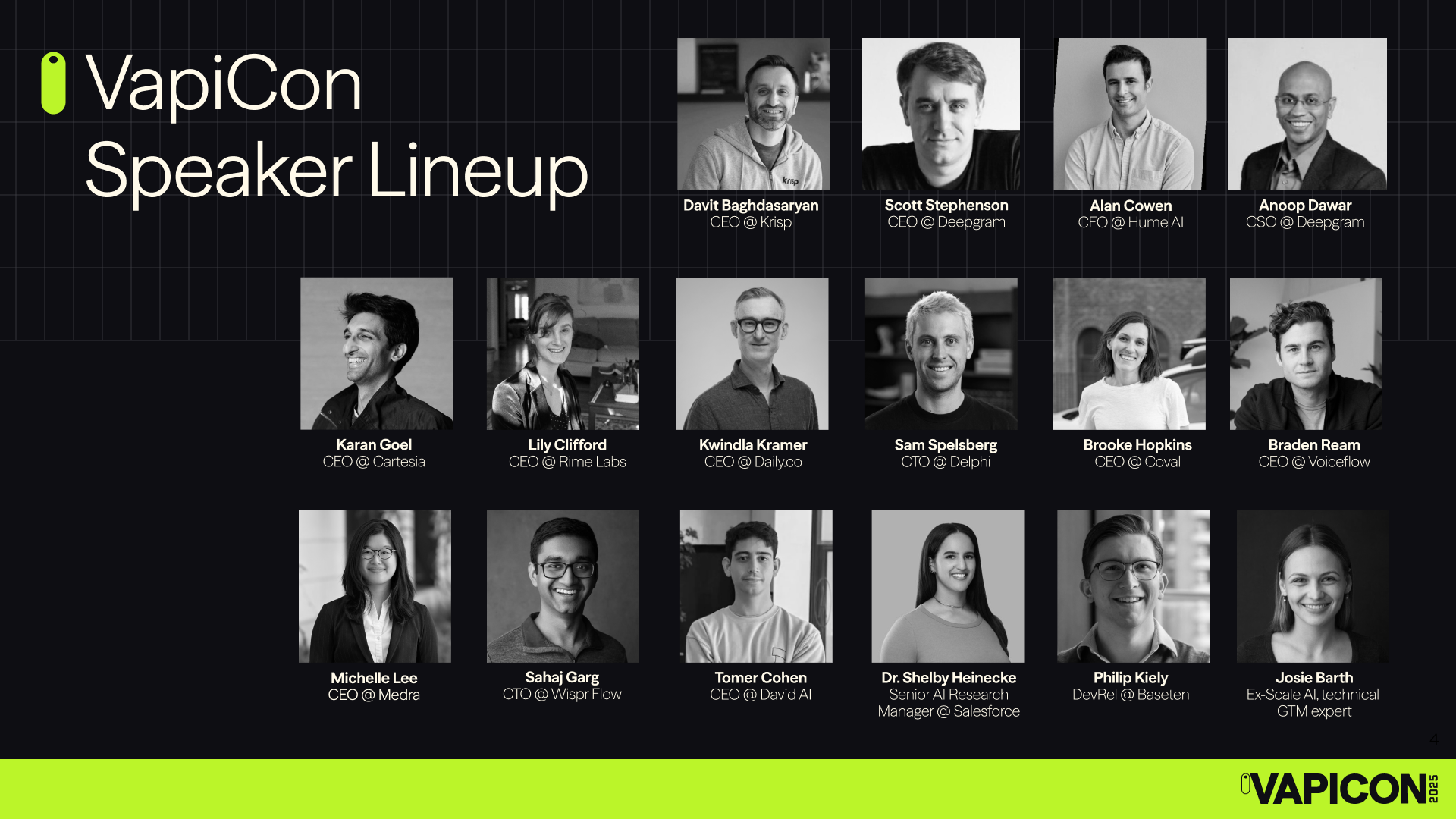 - VapiCon 2025: We're hosting the Bay Area's first-ever Voice AI summit this October in San Francisco. It’s a full day focused on real products, real use cases, and real builds.