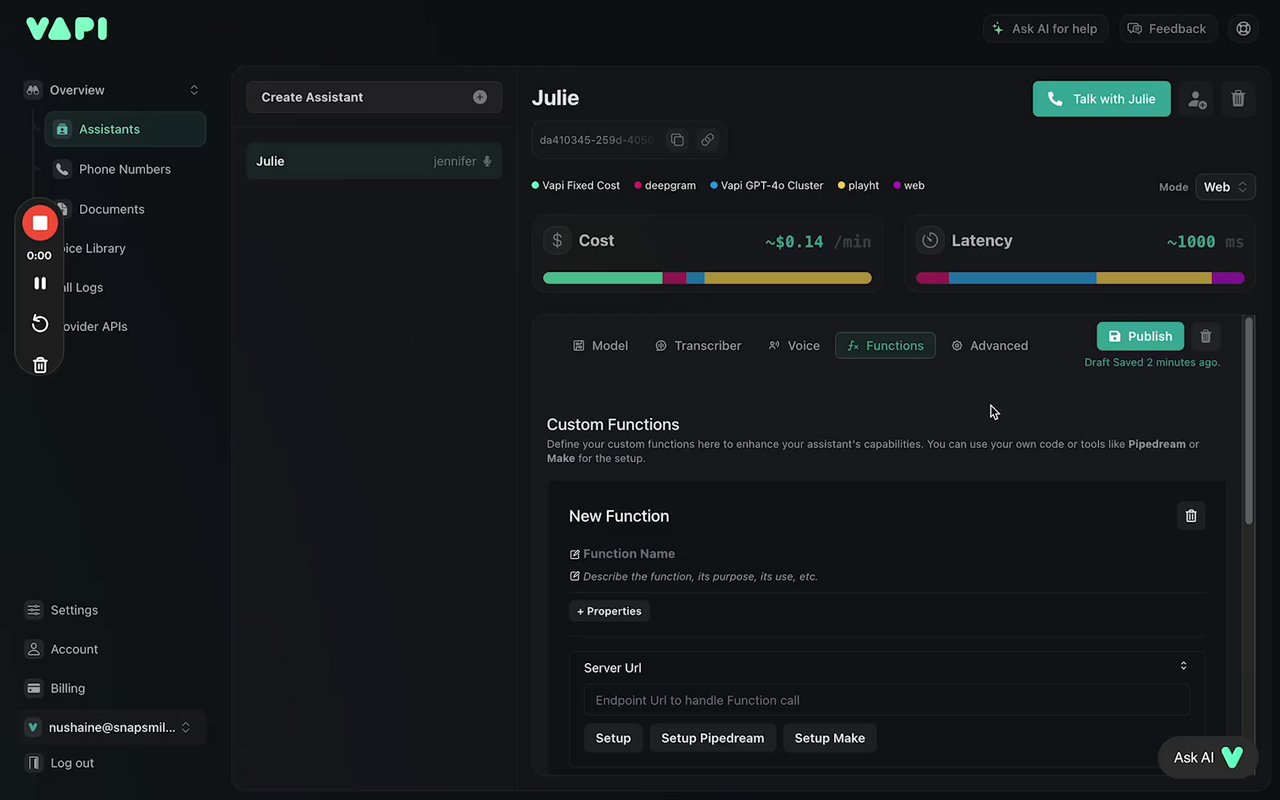 For some reason I stopped being able to create functions. I enter the function name / description, click publish and everything works out fine. when i refresh the page, the function isn't there anymore.